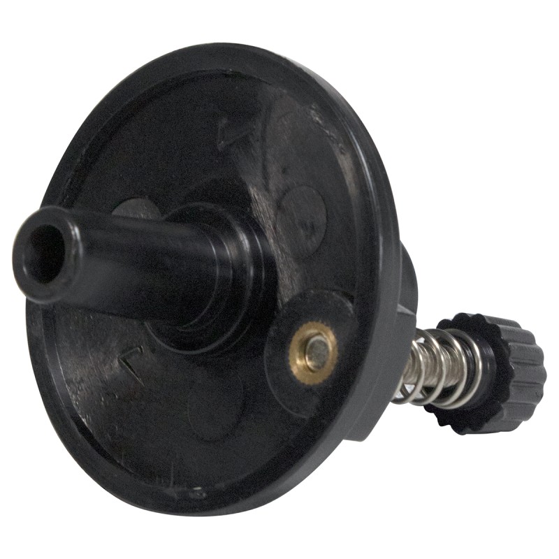Asiento inferior para soporte de contratiempos, fabricado con plástico color negro, 5 cm de radio, agujero de 0.8 cm, ajustable con tuerca y resorte, no incluye fieltros.